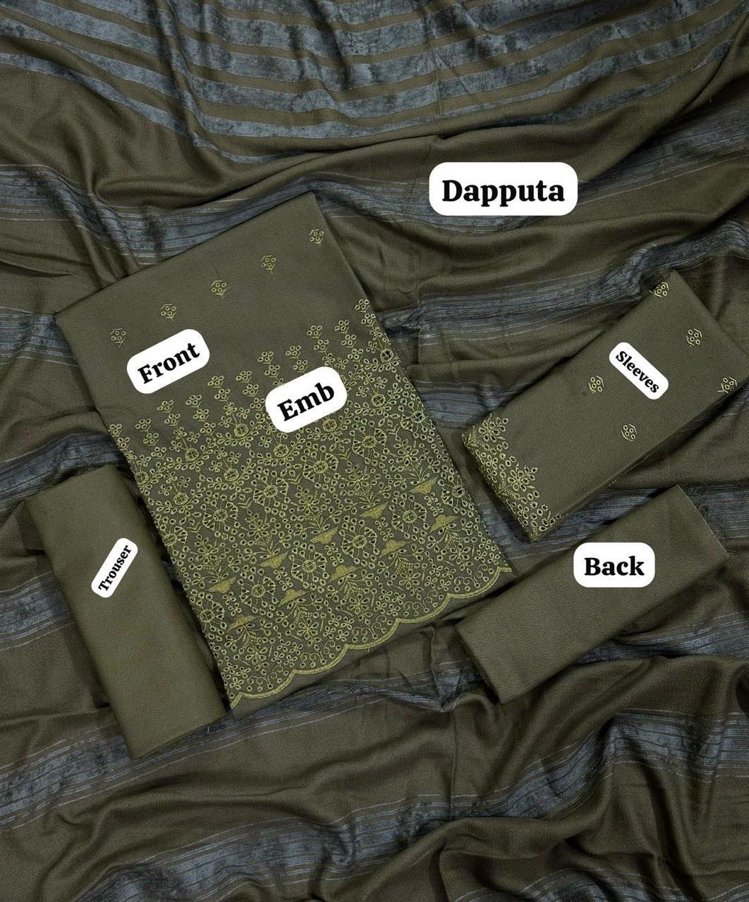 " EMBROIDERY DHANAK DAMAN THREE PIECE – BULANDI TEXTILE Skip to content